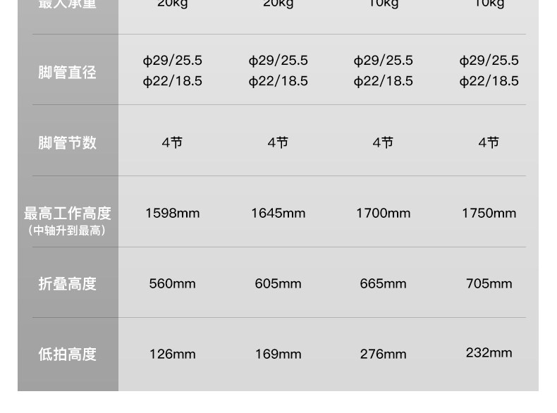 雲台最高承重約 10kg,可支援: