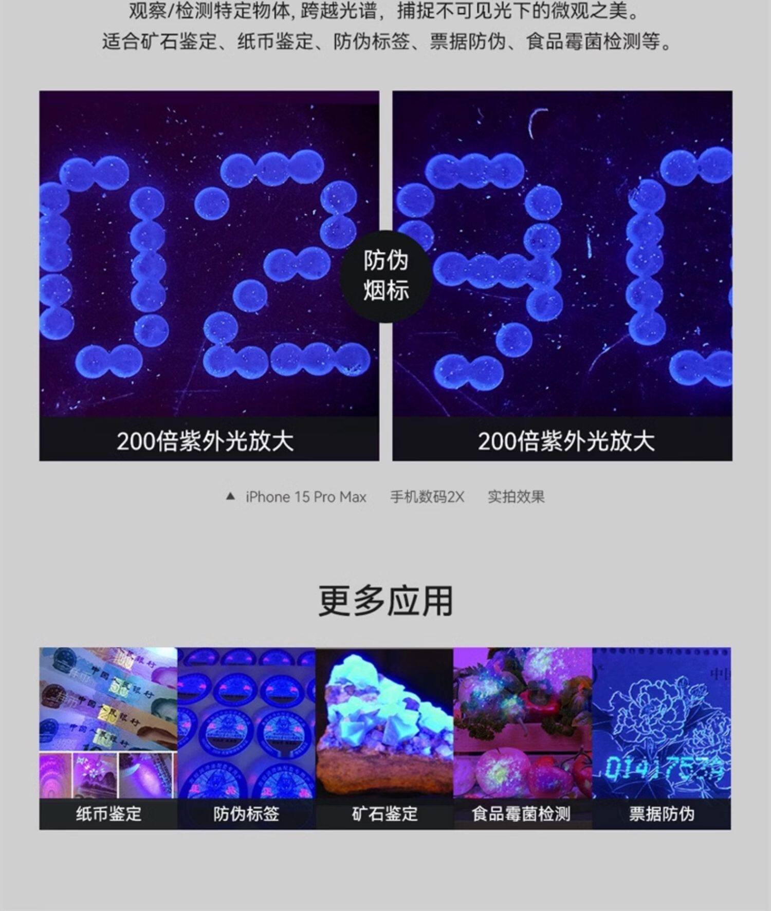 卡扣式100倍手機顯微鏡帶led紫光三種倍數高清珠寶文物鑒定