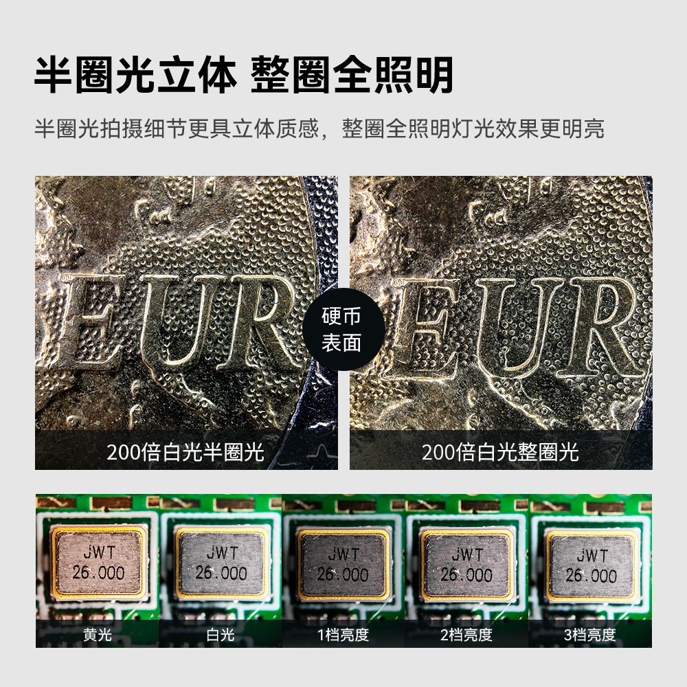 提供高解析度的放大效果,可清晰觀察如紡織品纖維、昆蟲結構、皮膚紋理、電子零件等微小物體。
