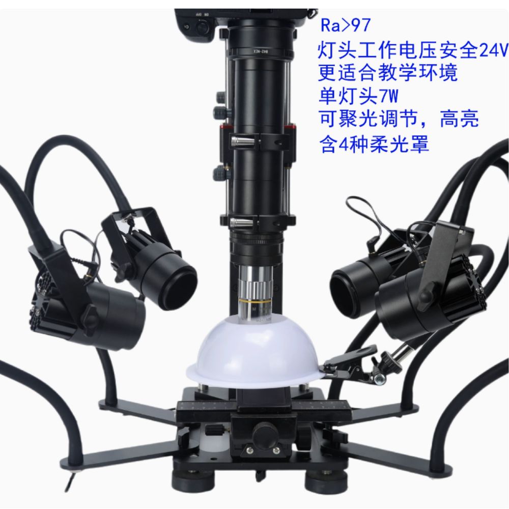 微距補光燈系統,微調支架,無快門線相機硬體解決方案 – 24V直流調焦四燈4種柔光罩帶罩架