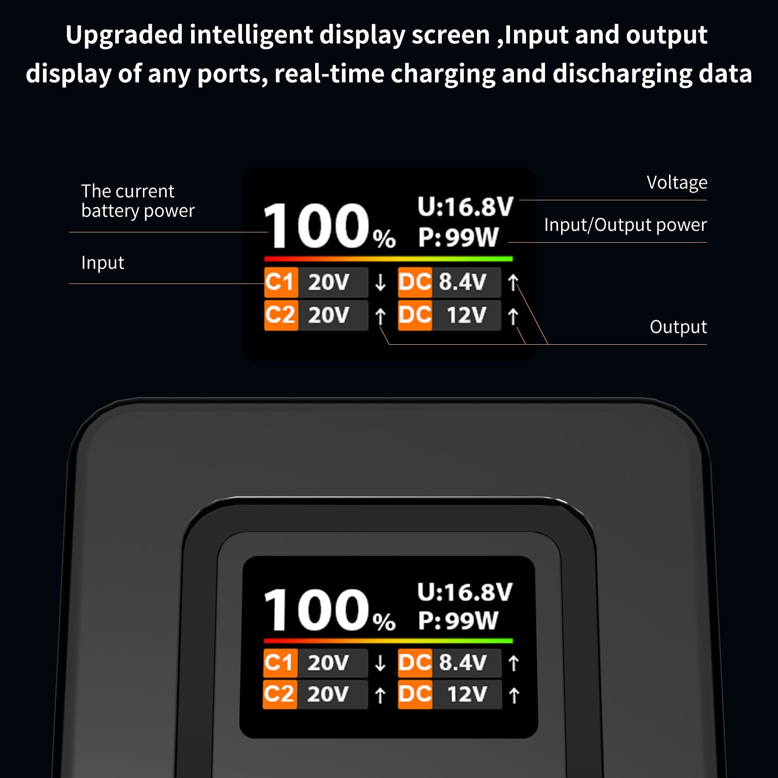 1.1 英寸螢幕可清晰顯示電壓、總電量、溫度及其他設備信息,讓電力狀態一目了然。