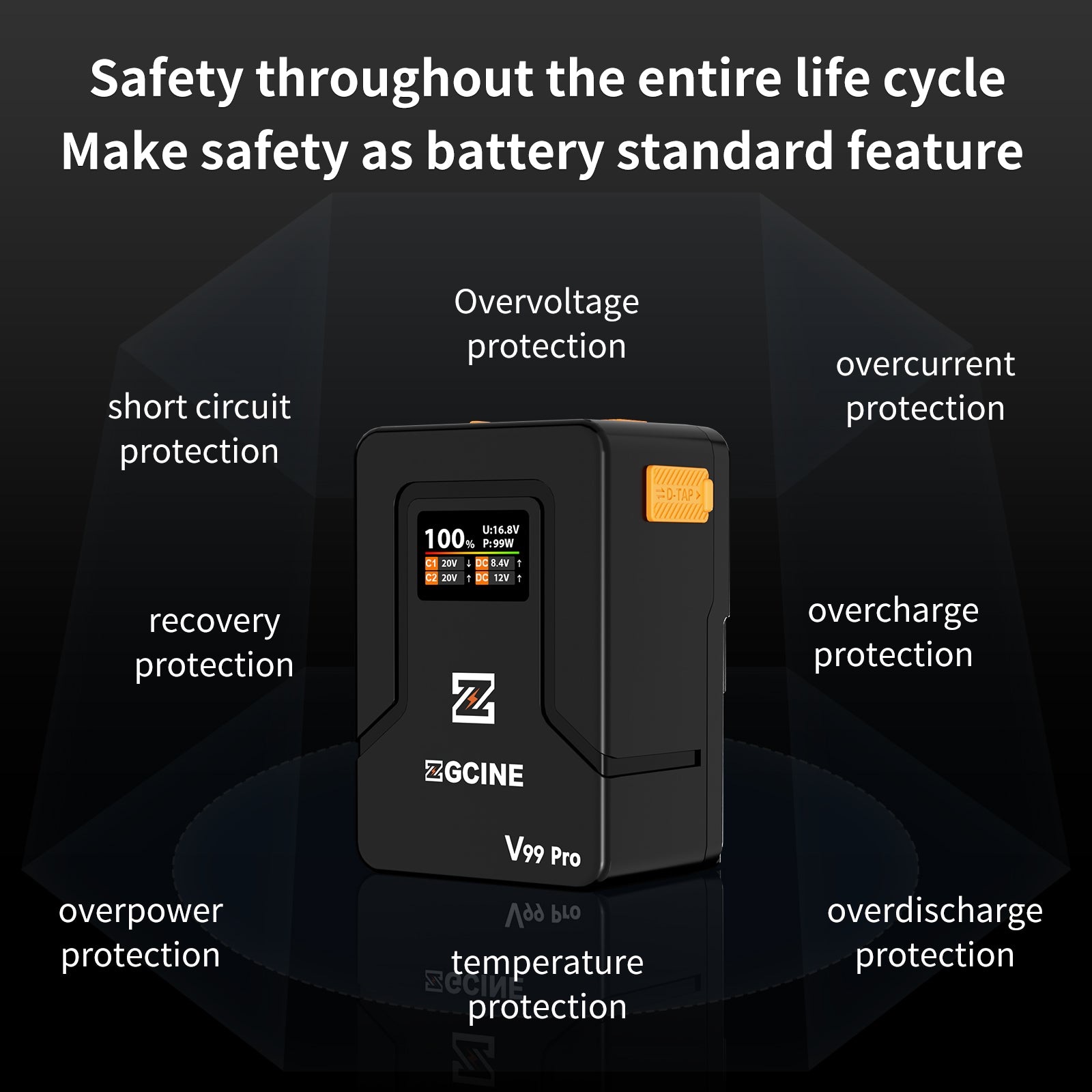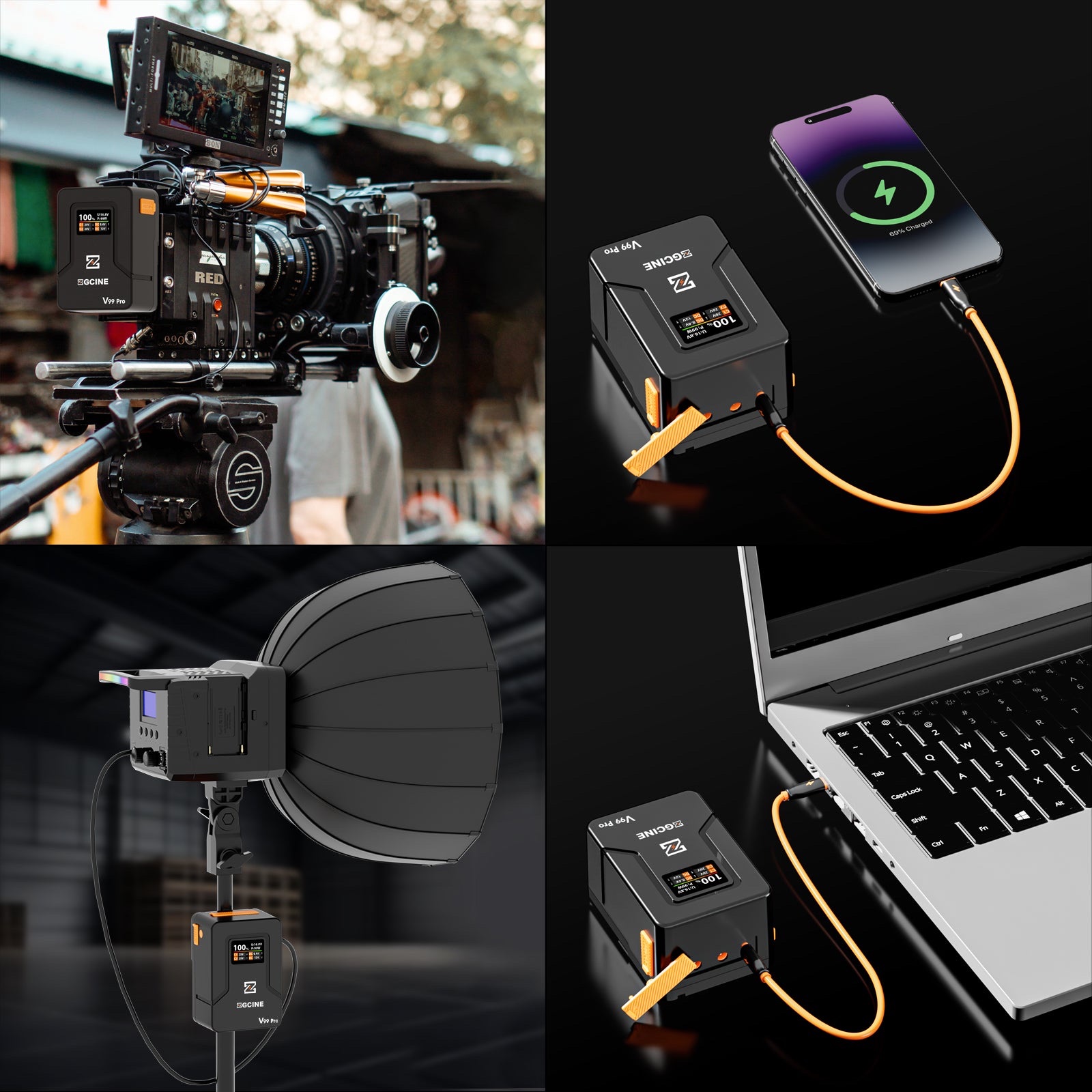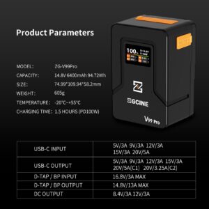 ZGCINE 正光 ZG-V99Pro V-Mount Battery Upgraded with PD100W faster charging speed, more ports and real-time smart display function